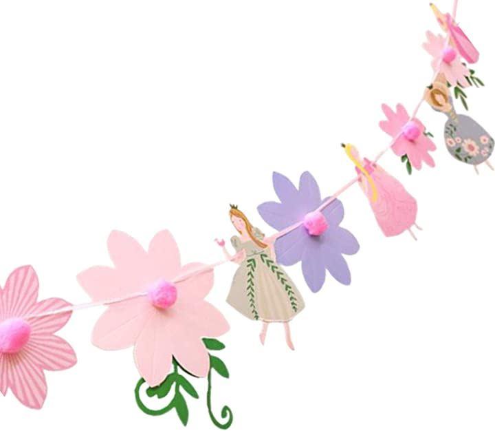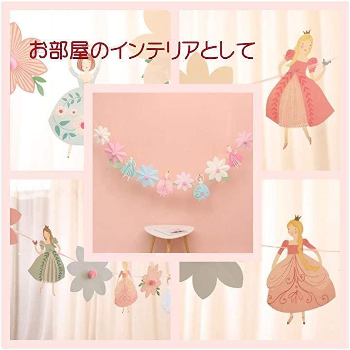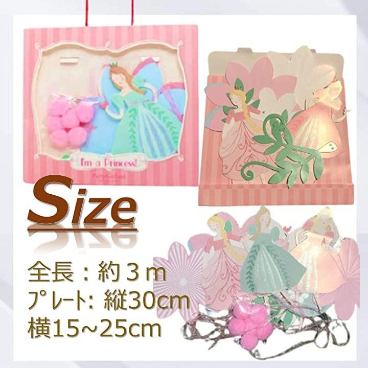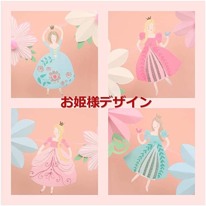 ・「サイズ」ガーランド全長:約3m プレートのサイズ:縦 30 cm、横 15 ~ 25 cm(大きめで存在感があります) 「内容」お姫様 4枚とお花 6枚、計10枚 「材質」 紙製 「原産国」中国