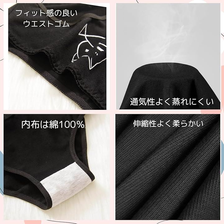 黒猫の可愛い表情を描いたイラスト5種類は表情豊かで毎日選ぶのが楽しみ。