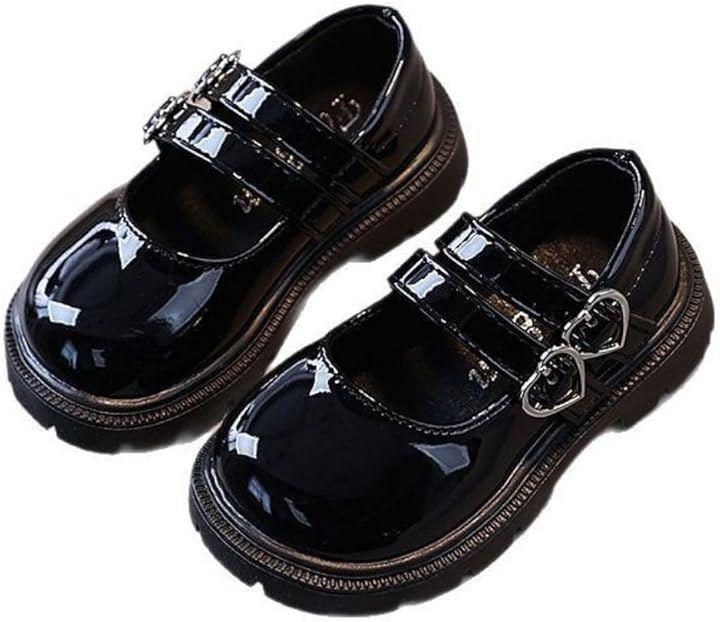 上品なエナメルブラックの光沢が足元を華やかに彩る、女の子用フォーマルシューズです。