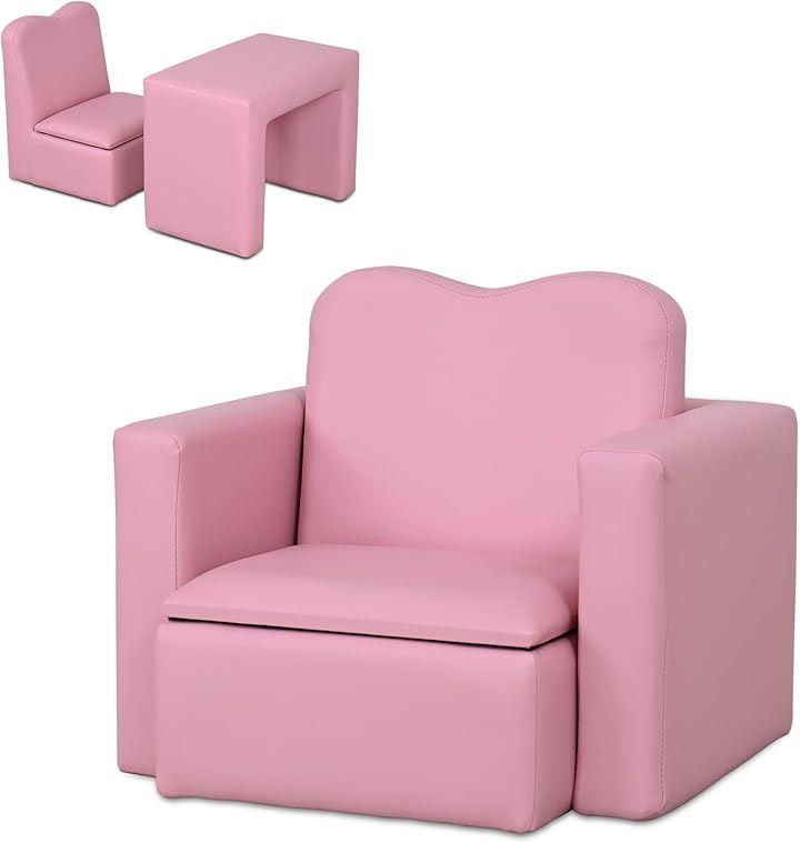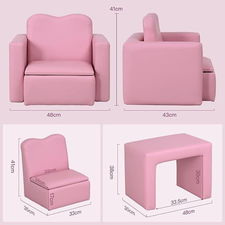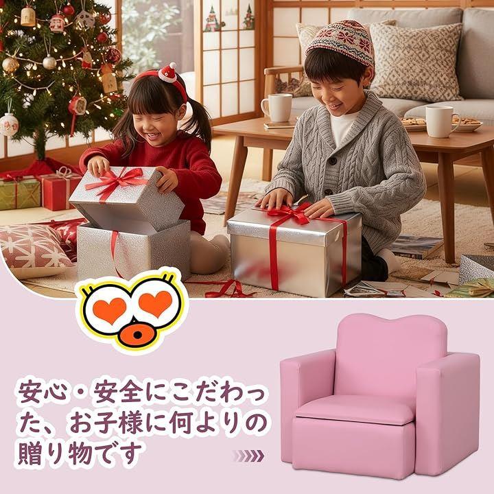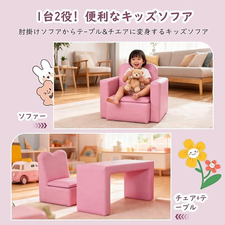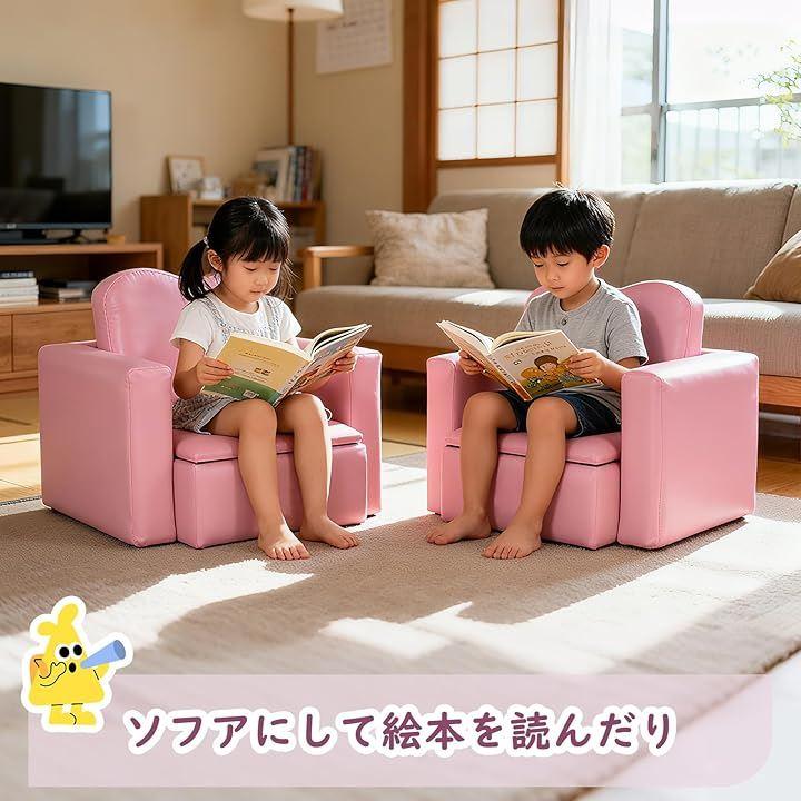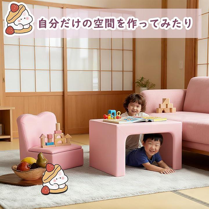 組み合わせればお子様用のソフアに、2 つに分ければ机と椅子になる 2 通りの使い方ができます。