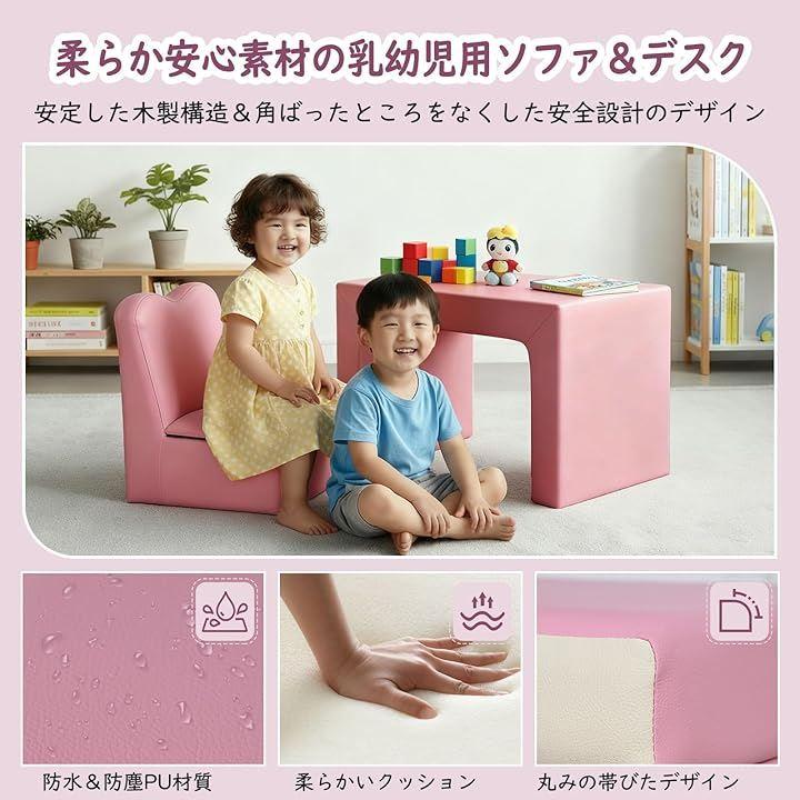 「柔らか安心素材の子供用ソファ&デスク」本製品はお子様の使用に最適な安全安心な素材を厳選しています。
