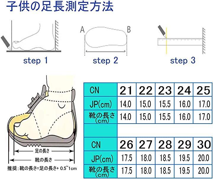 サイズ選択:サイズ=足長+0.5~1.0cm