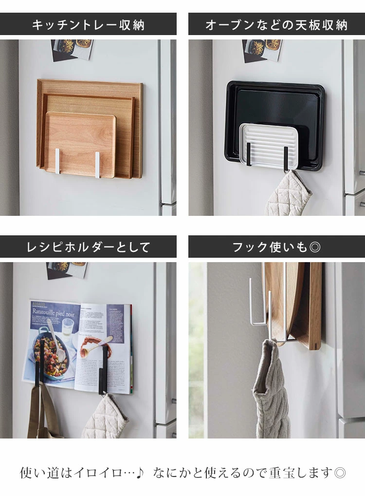 【マグネットキッチントレーホルダー 2個組】丁寧な暮らしをするおしゃれさんたちにお届けする、シンプルながらもアイデアのつまったtowerシリーズ。キッチントレーやオーブンやトースターの天板など収納に困りがちなキッチンアイテムを収納できるマグネットホルダー2個組。ホルダーの幅を調節できるので収納するものの大きさを選びません◎フックは2列に分かれており、奥にトレー・手前をフックとしてもご使用いただけます。