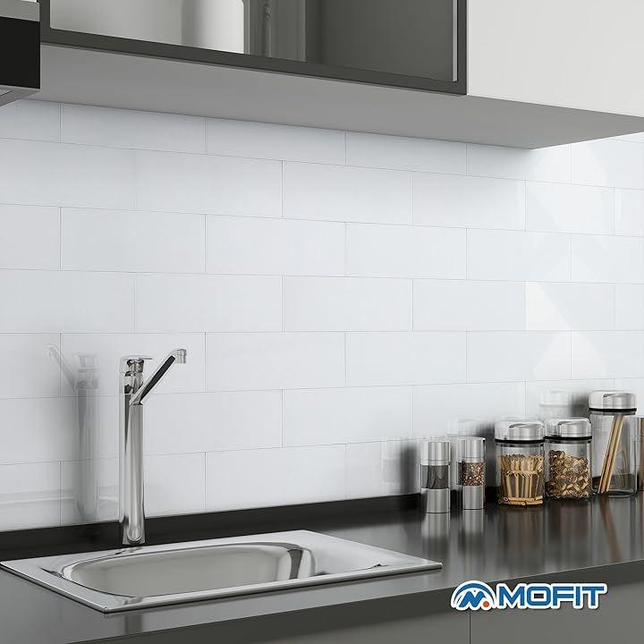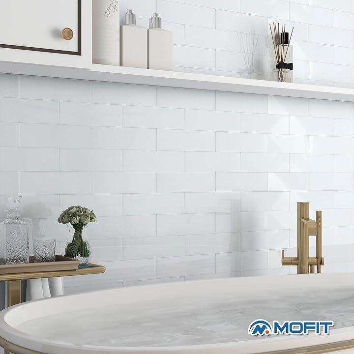 「接着剤不要。サブウェイタイル シール」M MOFITタイル 壁 シール 大きい、光沢のある仕上げ、傷もつきにくく、水の弾きも本物のタイルと遜色ないし、割れたりするようなこともないのでいいですね。