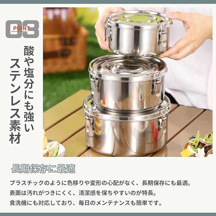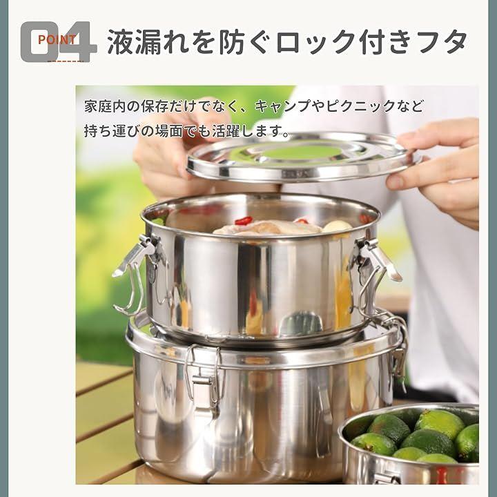 「密閉性に優れたキムチ保存容器」 ステンレス製のキムチ保存容器は、密閉性の高い設計でキムチのにおいや液漏れをしっかり防ぎます。