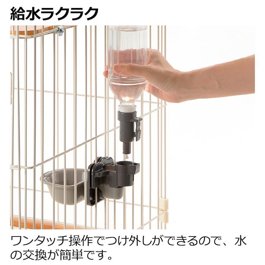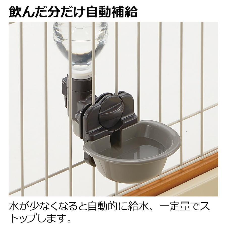 ■飲んだ分だけ自動補給 ・水がなくなると自動的に給水、一定量でストップします。 ■ワイヤー固定タイプ ・ケージやサークルに取り付けられるので、こぼれる心配がありません。 ・ペットの体高に合わせて高さを設定できます。 ■給水ラクラク ・ワンタッチ操作で付け外しができるので水の交換が簡単です。 ■お掃除簡単 お皿の部分が取り外しできるので簡単にお掃除できます。
