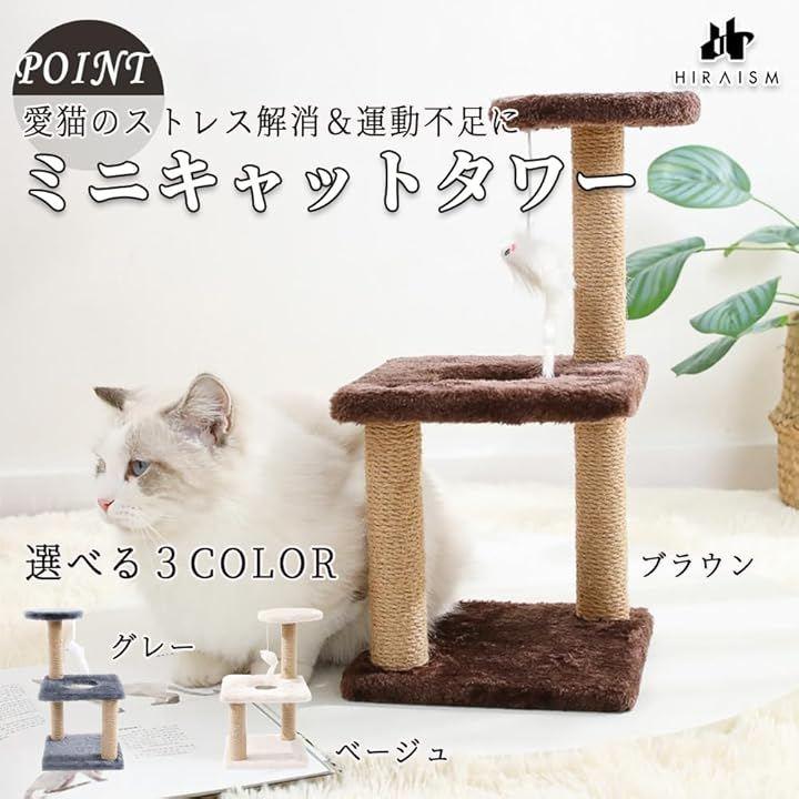 「商品紹介」ミニキャットタワー <サイズ>長さ20x幅20x高さ41cm <重量>約1.35kg <カラー>ベージュ or グレー or ブラウン *モニターの環境により、色の見え方に若干差が生じる場合がございます。