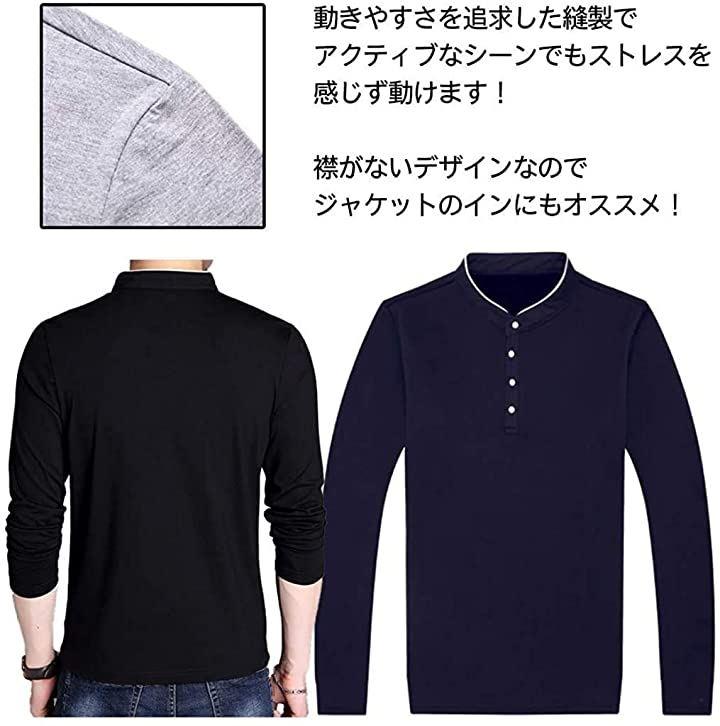 スッキリとしたスタンドカラーデザインのカットソーシャツです。