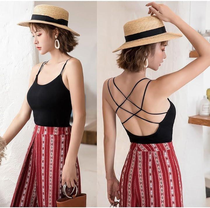 特徴的なバッククロスデザインが背中を美しく見せ、涼しさとセクシーさを演出します。