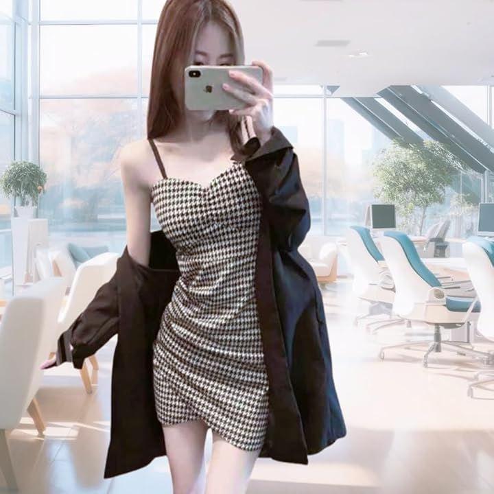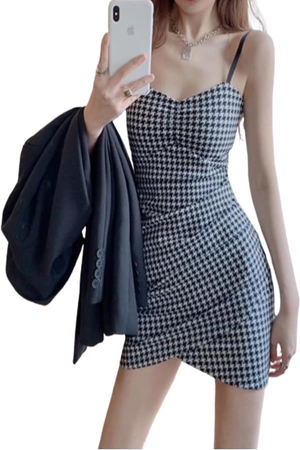 千鳥格子でクラシック&トレンド感とモード感のあるモテワンピ、上品な千鳥格子柄が、クラシカルかつおしゃれな印象に。