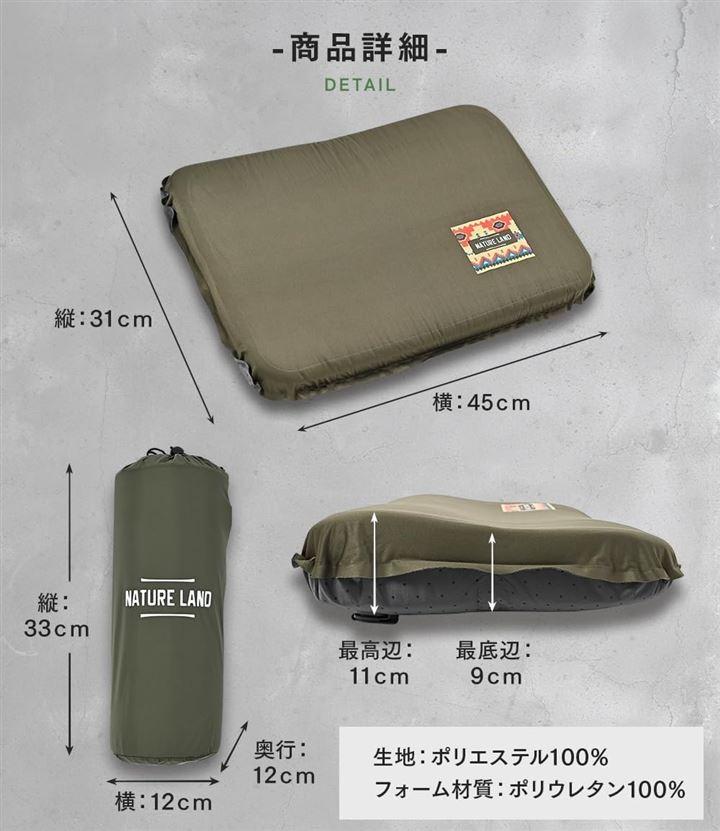 「商品詳細」〇ブランド:NATURE LAND 〇展開サイズ:約450x310xH110mm *最高辺:約110mm 最底辺:約90mm 収納サイズ:約330x120xH120mm 〇素材:ポリエステル,ポリウレタン(フォーム) *ご利用の際は取扱説明書をよくお読みください。
