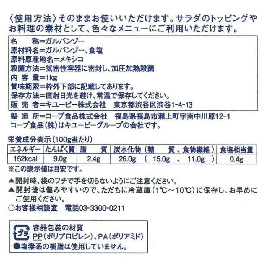 内容量:1kg商品サイズ(高さ×奥行×幅):35mm×315mm×125mm原材料:ガルバンゾー、食塩【重要】メーカーによる商品リニューアルに伴いパッケージ(内容量も含む)変更が行われた場合、新パッケージでお届け致します事ご了承願います。