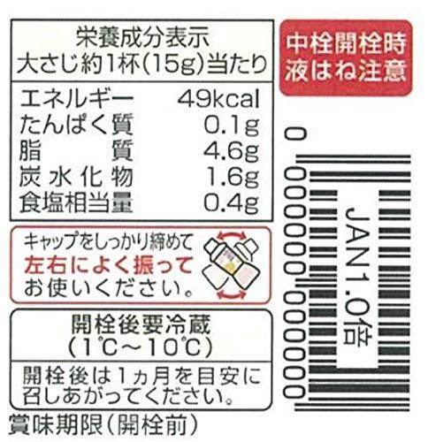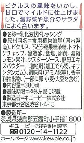 原材料:食用植物油脂(国内製造)、ピクルス、ぶどう糖果糖液糖、トマトケチャップ、醸造酢、食塩、卵黄、濃縮レモン果汁、ウスターソース、酵母エキスパウダー/増粘剤(加工でん粉、キサンタンガム)、調味料(アミノ酸等)、香辛料抽出物、(一部に卵・小麦・大豆を含む)