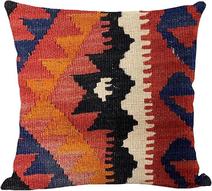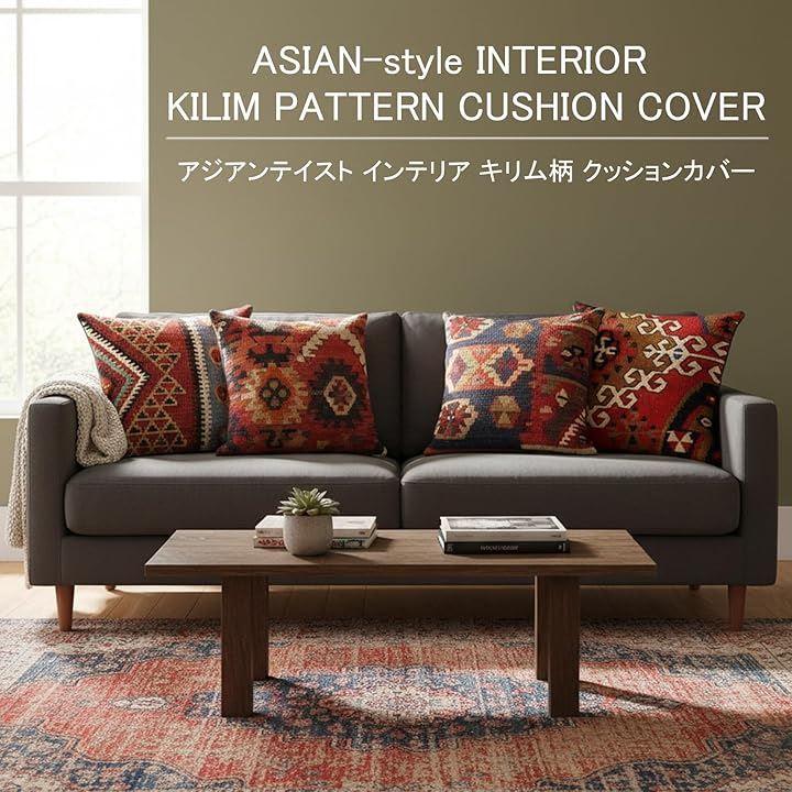 人気のキリム柄で、お部屋に彩りを。 エキゾチックな民族柄と温かみのあるキリム柄が特徴のクッションカバーです。