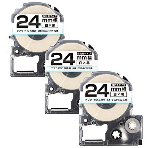 通常1-5営業日で発送:[商品]キングジム用 テプラPRO用 SS24KW 互換テープ [セット内容]キングジム用 テプラPRO用 SS24KW 互換テープ 強粘着 白/黒文字 24mm 3個セットしっかり貼れる強粘着タイプです。テープ台紙に切り込みが入っており、はがしやすいラベルテープです。※こちらの商品はテプラ互換です。ネームランドではご使用頂けません。