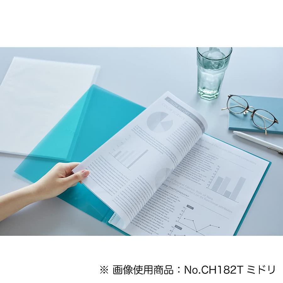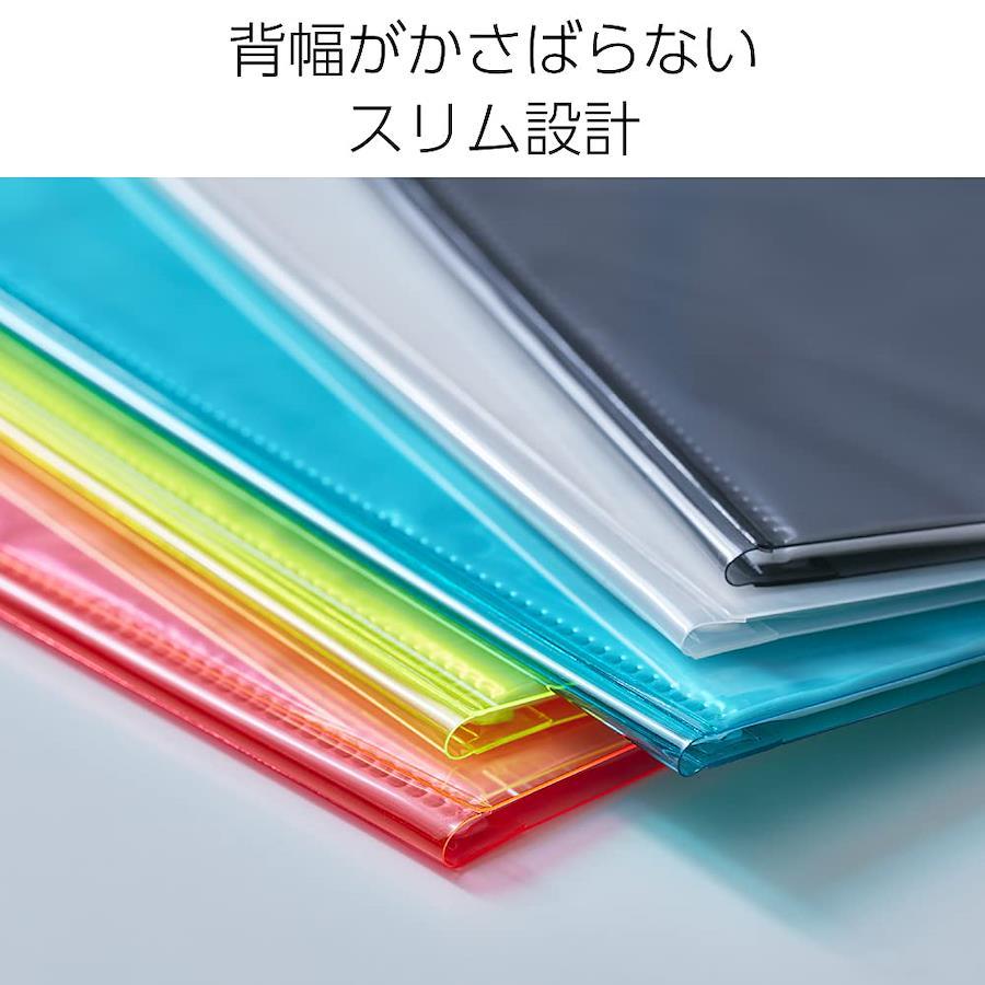スリムな背幅でかさばらないクリアーファイル20ポケットでありながら、背幅約6mmのスリム設計。背には柔らかいPVC素材を使用しているため表紙を360度折り返すことができて机の上でもかさばりません。