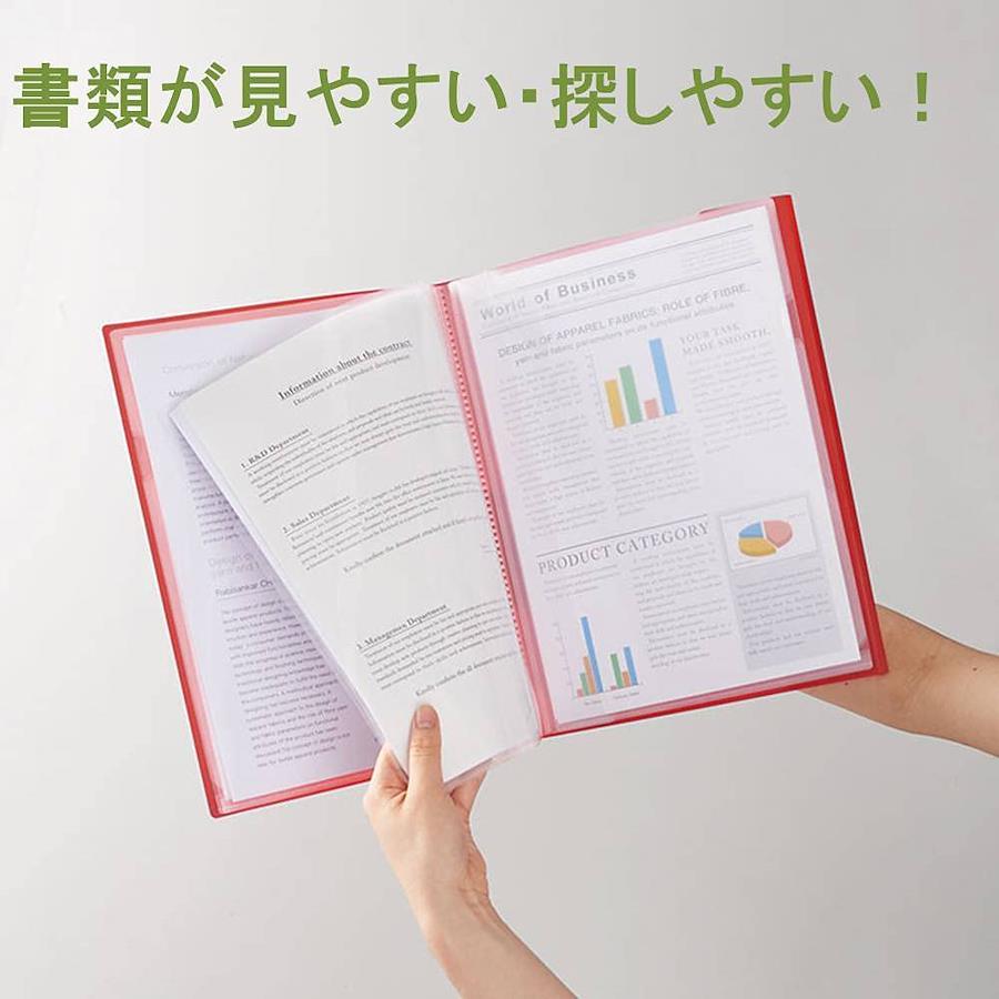 ■書類が見やすい・探しやすい・取り出しやすい!クリアーホルダーが冊子状にまとまるためパラパラと本をめくるように書類が探せ、クリアーホルダーを収納した状態で書類だけの出し入れができます。※クリアーホルダー1枚あたりのコピー用紙収納枚数:10枚