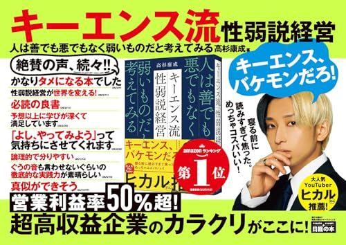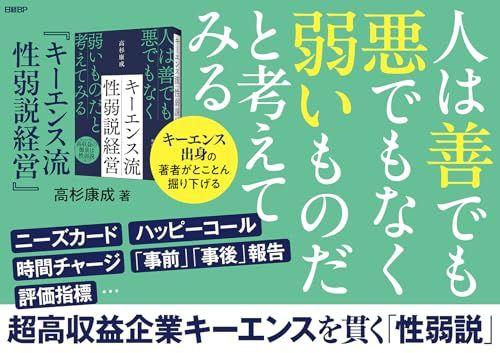 大人気YouTuberヒカルさん推薦!キーエンス、バケモンだろ! 寝る前に読みすぎて焦った。 めっちゃコスパいい!超高収益企業キーエンスを貫く1つの根本的な考え方性弱説をあらゆる側面から解説―――。今まで誰も真正面から取り上げてこなかったキーワードを、日々現場で忙しく働く若手から、たくさんの部下を束ねる管理職から経営者までのすべてのビジネスパーソンに向けて、キーエンス出身の著者がとことん掘り下げて伝えます。本書は、性弱説の考え方と、キーエンスが採用する具体的な制度の成り立ち・役割を学びながら、自身の日々の働き方を改革する仕事術の本です。同時に、部下のやる気を引き出し、組織全体の成果・効率を高めるマネジメント・組織論の本でもあります。性弱説とは、人を善悪ではなく弱いものと捉え、その前提に立ってビジネスにまつわる仕組みや制度を整えていくという考え方です。キーエンスが実践し、これまでにも様々な書籍やビジネス誌で語られてきた仕組みや制度は、すべてこの性弱説が基点になっていると言っていいでしょう。社員、取引先、顧客など、ビジネスには多くの人が関わっています。その人たちと徹底的に向き合ってきた会社がキーエンスです。著者はそんなキーエンスの中枢である新商品・新規事業企画担当を長年に渡って任されてきた高杉康成氏。キーエンスを退職後、中小企業から大企業まで多くの会社を指導する中でずっと感じてきたモヤモヤはキーエンスと他社の違いは何かというものでした。その答えが、日々の活動が性弱説に基づいているのかどうか。キーエンスの制度を細部まで解説し、一般的な会社とどう異なるのか、どういう視点を持てば変えていけるのかを丁寧に伝えます。キーエンスと同じ水準でできるわけがないと躊躇する必要はありません。一部の分野だけでも、キーエンスの半分程度の密度で働けるものを持てれば、その人はその時点で、一般的な会社において間違いなく優秀な社員になっています。