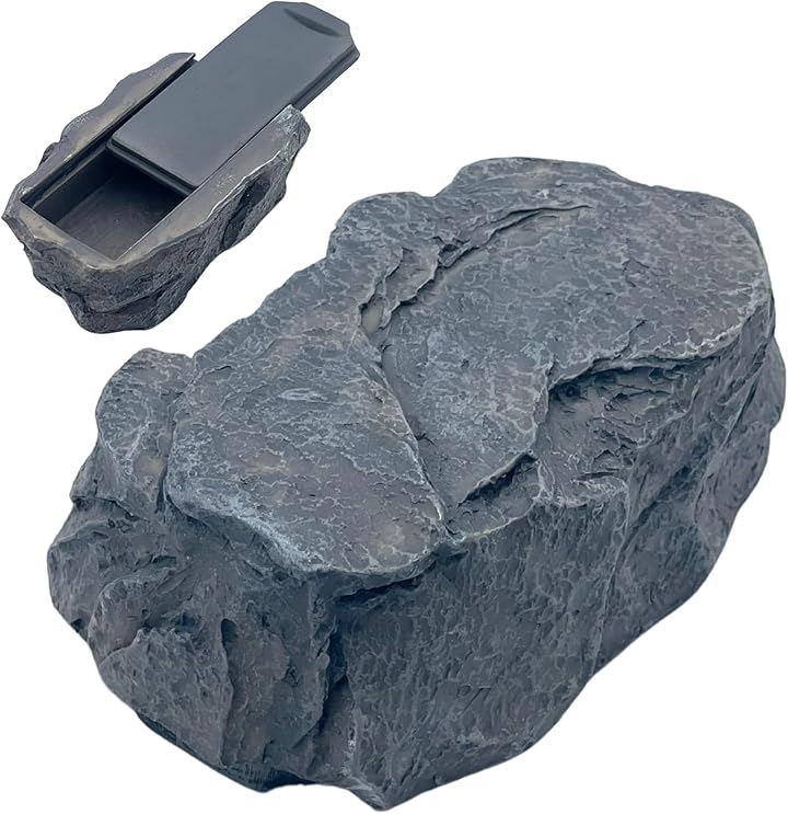 「リアルな石に見える隠し金庫で防犯対策」まるで本物の岩石のようなリアルな造形で、庭やベランダなど屋外に自然に溶け込みます。