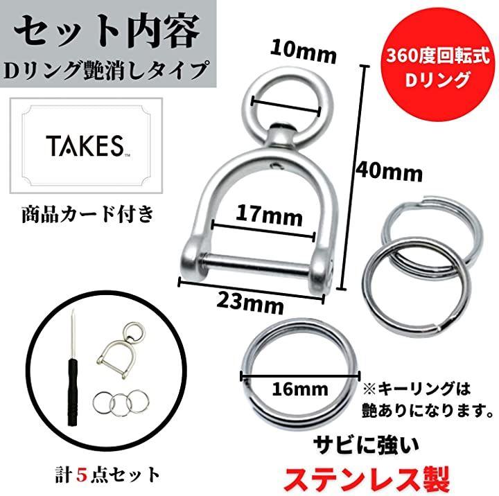 ・「セット内容」360度回転Dリング(ステンレス製)、キーリング16mmx3個(ステンレス製)、マイナスドライバー、TAKESブランドカード付き