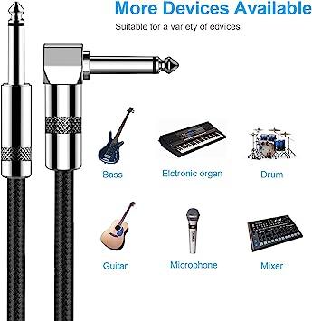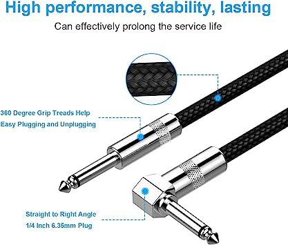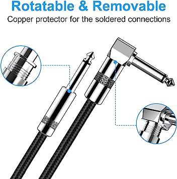 ストレートとライトアングル1/4インチの金属製コネクターは、あらゆる器具、ペダル、アンプジャックにしっかりと接続します。 L字型で、ステージ上のギタースタンドに最適です。