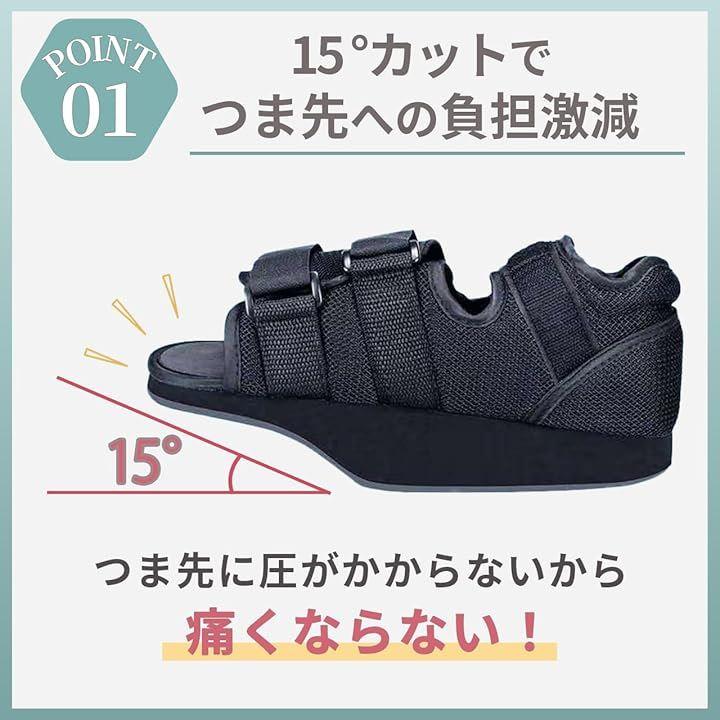 15度という角度によりつま先減圧、歩行のしやすさを補助しています。