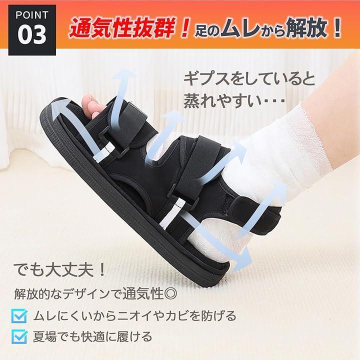 1,ギプス装着時のつま先からかかとまでの長さを測定して選択することを推奨します。