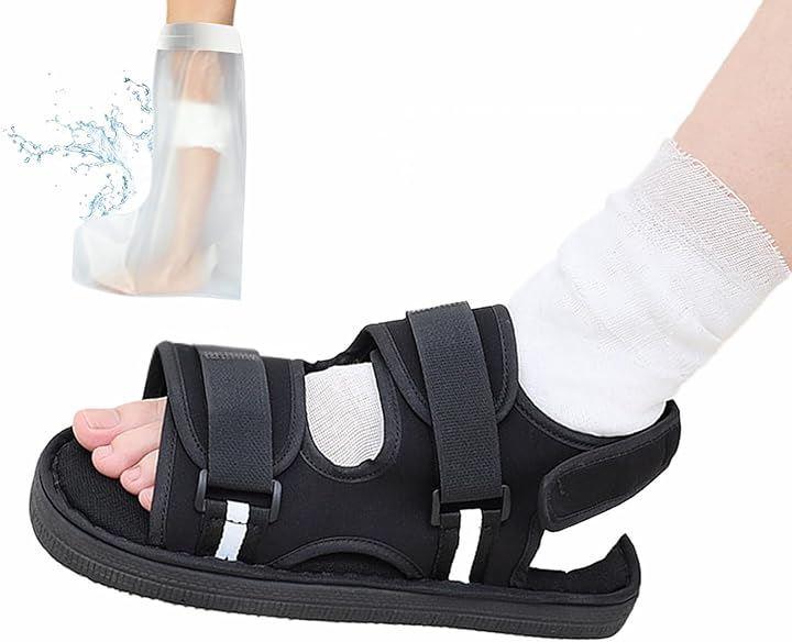 普段履く靴やサンダルで引っかかっていた方はこれでお悩み解決です。このギプスシューズなら”ガバッと”開いて足を乗せるだけ、子供でも簡単に装着できます。また、防水カバーも付属しているので雨の日でも使用OK。