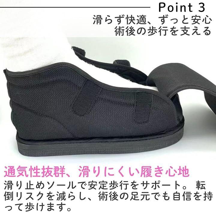 「つま先ケアと歩行サポートで、術後も安心快適」つま先と踵の圧力を軽減する設計で、ギプスやシーネ使用時の負担を低減。