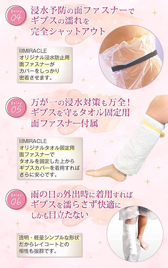 また雨の日の外出時、傘やレインコートでは守れないギプスの濡れをしっかりと防ぎます。