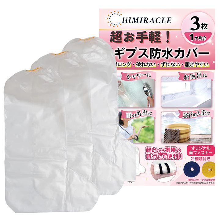 ・「内容物」ギプスカバー(クリア透明)3枚(約1ヶ月)・浸水防止面ファスナー1巻・タオル固定用面ファスナー1巻「商品仕様」ギプス防水カバー 男女兼用 大人子供兼用(身長130cm以上) 対象部位:手・足・腕 厚み:0.13mm 底長:38.5cm 高さ:65cm 履き口:2重ゴム(最大口径48cm) 重量:カバー1枚25g 色:クリア(透明)・面ファスナーの色は選べません。