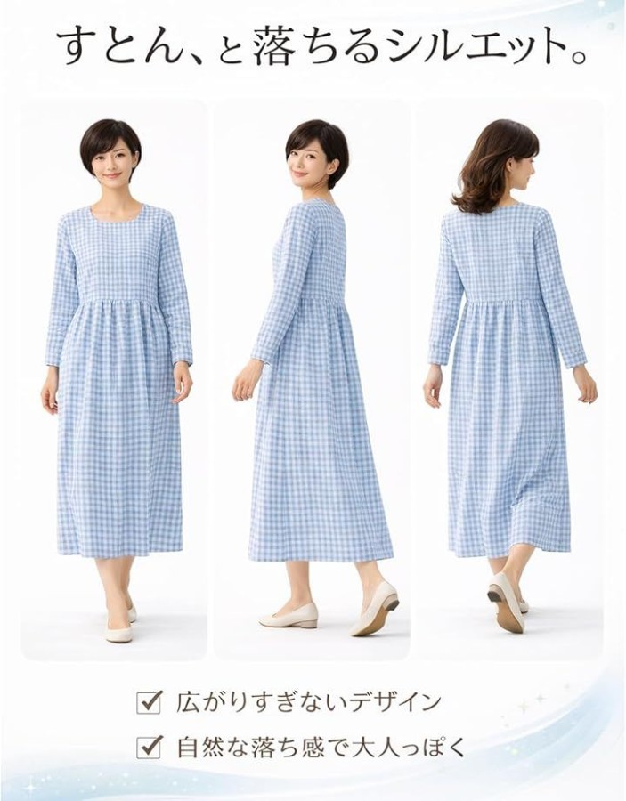 ゆったりとした抜け感のあるシルエットで、カジュアルになりすぎないきれいめな丈感が魅力のギンガムチェックシャツワンピース。