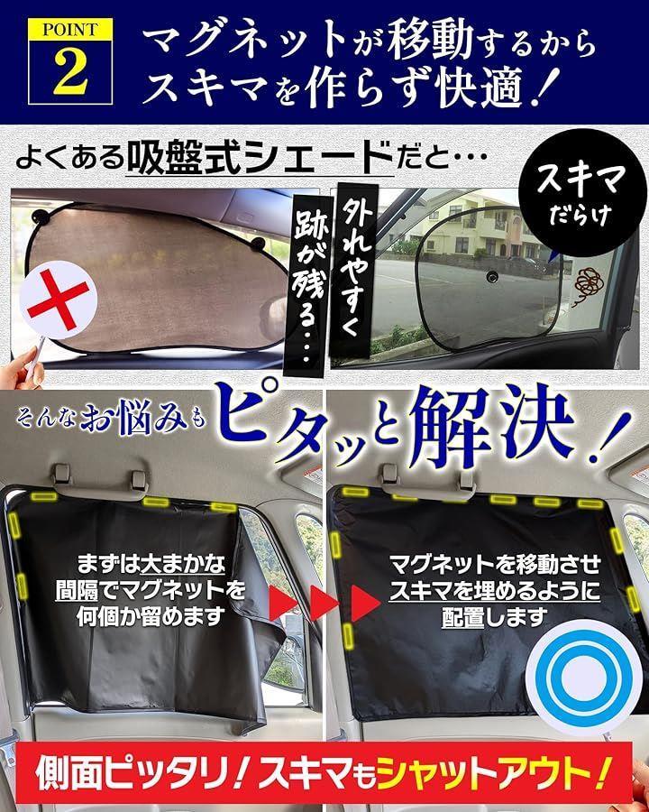 車の窓にピタッと貼り付けるだけで、手軽に日よけやプライバシー保護を実現します。