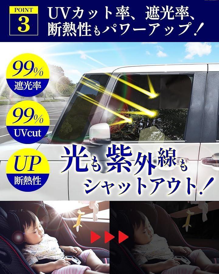 車内のプライバシーを守り、直射日光による車内温度の上昇も軽減します。