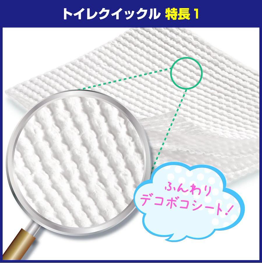 厚手で丈夫なふんわりデコボコシートなので、便座・便器まわりから床・壁まで「1枚でトイレまるごとおそうじ」。汚れが手につく心配もなく、快適にふきそうじができます。