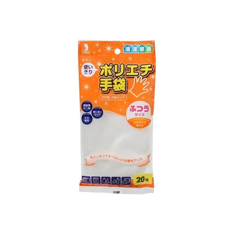 ※パッケージデザイン、内容量、原材料名等は予告なく変更する場合があります。パッケージデザイン、内容量、原材料名が異なる場合でも、返品、交換の対応は不可となりますので予めご了承下さい。メーカー品切れになっている場合は予定日より出荷が遅れることもございますので予めご了承ください発送までに7営業日以上かかる場合は別途ご連絡いたします。使いきりで衛生的。●ポリグローブ●全長27.5cm●材質:ポリエチレン●入数:20枚外エンボス(凹凸)加工を施し滑りを防止した左右兼用の使い捨て手袋食品衛生法に適合した使いきり手袋使用上の注意:●体質によって痒み、かぶれ、発疹等を起こすことがあります。異常を感じたらご使用をお止め下さい●熱いものには触れないで下さい。火傷をする恐れがあります。●刃先、刃物や尖ったもの等で傷つけないようにして下さい。破れの原因になります。●感電の恐れがあるので電流には触れないで下さい。保管および取扱い上の注意:●品質保持の為、直射日光、高温、多湿での保管は避けて下さい
