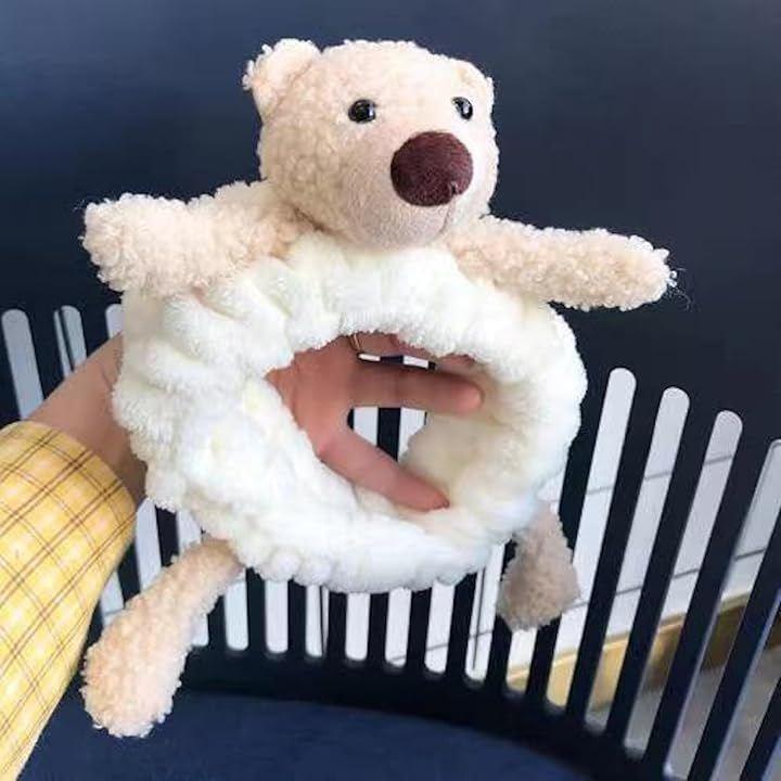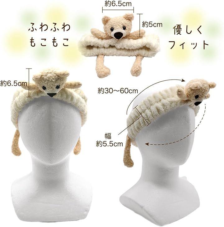 クマのヘアバンドはふわふわモコモコのタオル地だから肌にやさしい付け心地で髪をしっかりホールド。楽しく快適に使えることが出来ます。