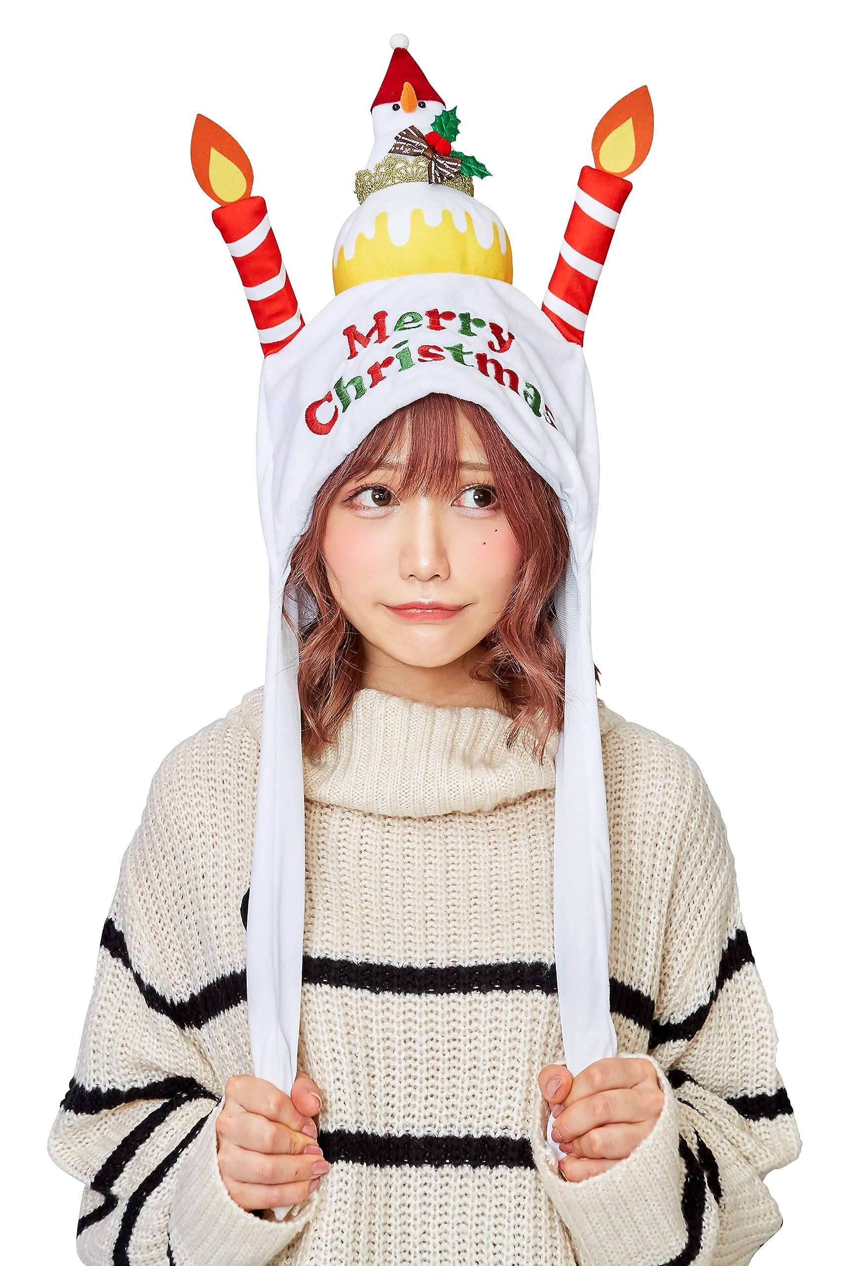 持ち手の部分を手で押すとろうそくがパタパタと動くギミック付きの楽しいクリスマスケーキハット。スノーマンの飾りとヒイラギがクリスマス気分を盛り上げます。MerryChristmasのロゴもクリスマスカラー。動きが可愛いので、動画や配信で使えるアイテム。