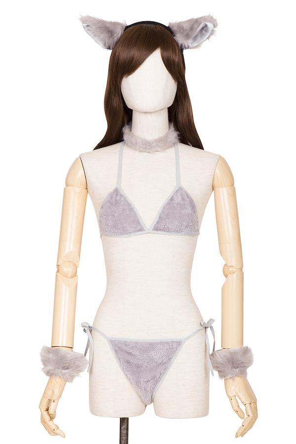 「#例のペット」こと、コスランジェリー「SugarPet」シリーズ。ふわふわファーの狼耳カチューシャ、チョーカー、ブラジャー、パンツ、ワイヤー入りのしっぽ(安全ピンつき)、カフスの6点セット。パーツ単品でもお使い頂けます。伊織もえさんの可愛い狼さんパッケージにも注目です。【推奨サイズ】Ladies:B/~90cm、H/~96cm【注意事項】デリケートな素材ですので、強くひっぱるなど無理な力を加えると破損する恐れがありますのでご注意ください。お洗濯可能な商品においては、優しく手洗いの後、軽く絞り、形を整えてた上、平干ししてください。水ぬれ、汗、摩擦等により色落ちする場合があります。着用する人の体形によって、見え方は異なります。パッドは入っておりません。ブラジャーとしての機能性はございませんのでご注意ください。水着ではございませんので、水中での使用はお止め下さい。【洗濯表示】洗濯機不可、弱い手洗い可、塩素系漂白剤による漂白不可、アイロン不可、ドライクリーニング不可【製造元】株式会社クリアストーン(#lf)(#lf)(#lf)商品購入前に、ストア紹介ページをご確認ください。