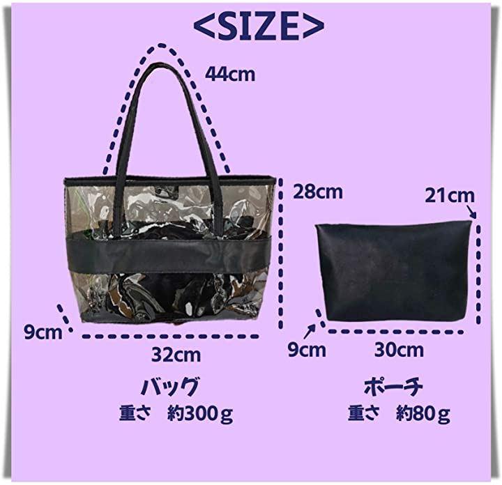 ・クリアトートバックの本体カラーと同色のファスナー付きポーチが付属していますので、おしゃれに小物をすっきり収納してくれます。