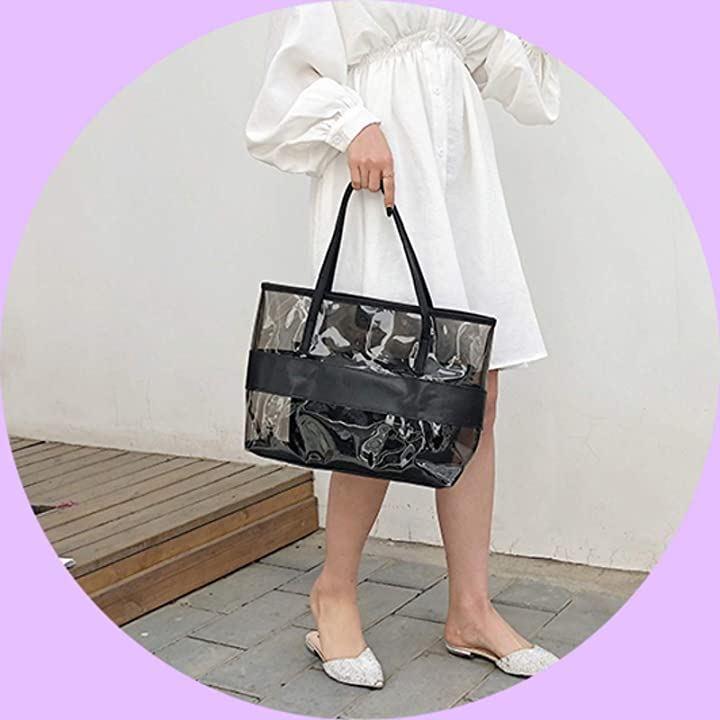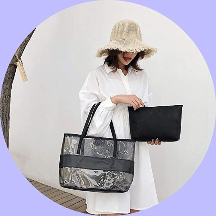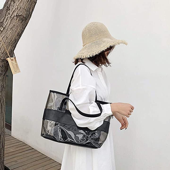 透明感のあるクリア素材がトレンド感満載のクリアトートバック。