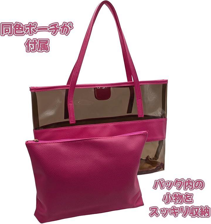 クリアトートバックの本体カラーと同色のファスナー付きポーチが付属していますので、おしゃれに小物をすっきり収納してくれます。
