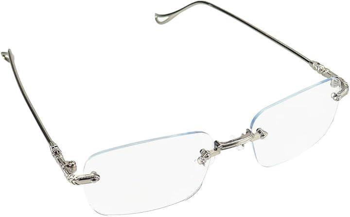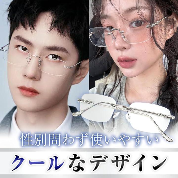 「セット内容」リムレスクリア眼鏡x1点 「サイズ(約)」14cmx15cm 「カラー」シルバー 「材質」金属