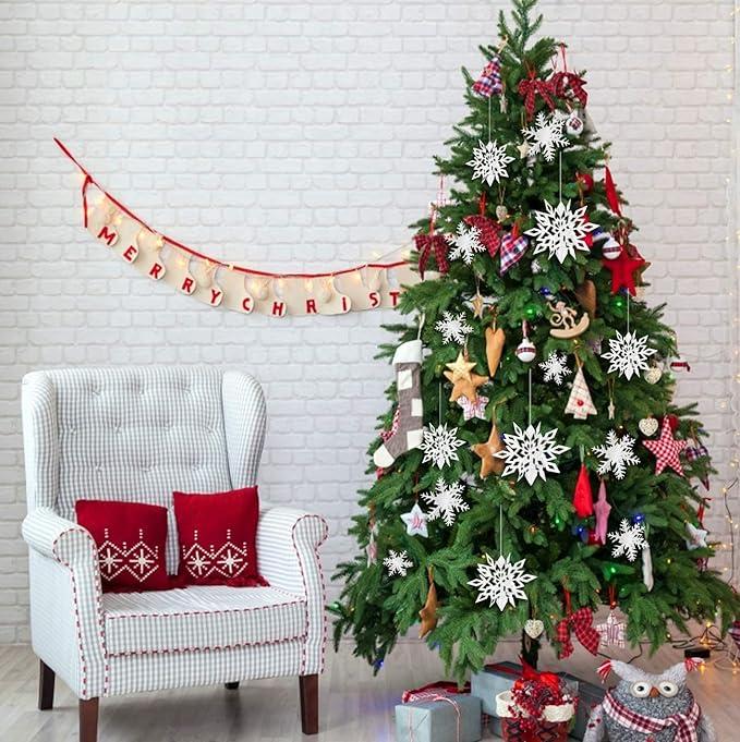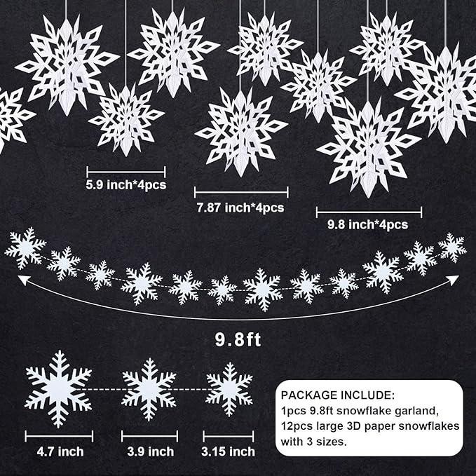 【雪の結晶 24枚】12枚大きな白色の雪花は9.8インチ、7.8インチ、5.9インチの3サイズで、各サイズに4枚の雪花があります。雪の結晶追加(12枚)。共24枚 【高品質両面スノーフレーク】:スノーフレークガーランドは高級のパールペーパーで作られ、固くて防水で、しわになりにくいです。両面にキラキラ光るコーティングが施されたスノーフレーク、明るい光を反射して輝きを増します。組み立て済み、スノーフレーク吊り渦巻き、天井または枝に掛けてクリスマスツリーに対して必要な装飾です。雪の結晶はクリスマスイメージ飾りでこの雪のデコレーションをクリスマス祝いの場所に掛ければクリスマスの雰囲気を盛り上げるに間違いないです。 【かけやすい、繰り返し使用可能】:各ガーランドは組み立てられた状態で簡単に掛けることができます。この雪の結晶は取り付けも取り外しも簡単で繰り返し使用できて実用品です。雪片を弦の上で動かして、間隔を好きなように調整できます。天井に掛けたり、壁に沿って目を見張るような背景を作成したり、戸口、窓、家具などに簡単に取り付けたりするのは豪華です。 【使い場合】このスノーフレーク吊り装飾は、冬をテーマにしたパーティーやディスプレイ、特に冬の誕生日パーティー、冬のワンダーランドパーティー、クリスマスパーティーに最適です。ハロウィーン、クリスマスデー、新年、誕生日、仮装パーティー、自宅、店舗、幼稚園、保育園のインテリアやクリスマスツリーの飾りなどにおすすめします。ご注意:①雪片は縁の角が多く、線と縁が絡みやすいので、吊るすときは仕上げに注意してください。もっと見る