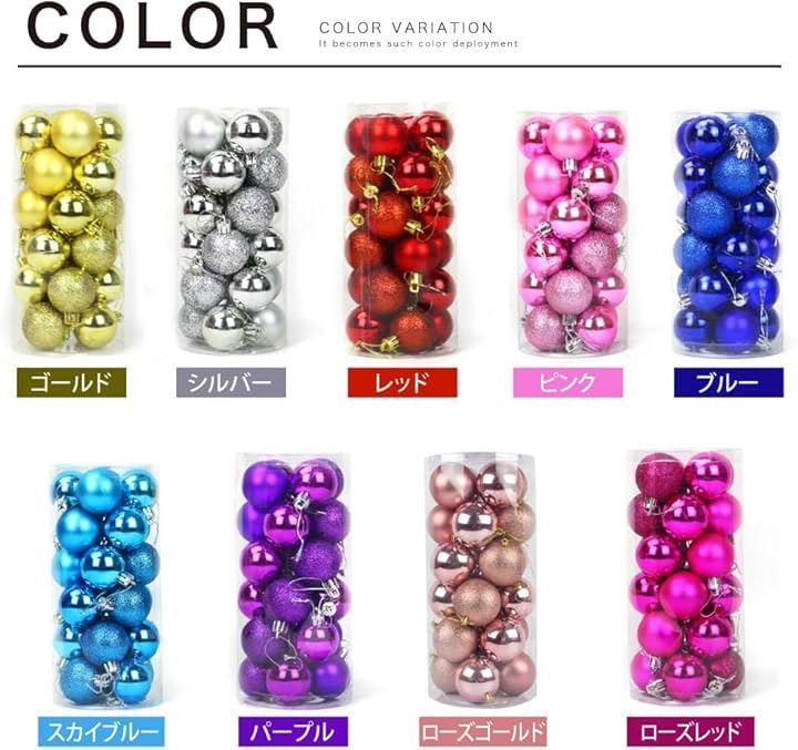 「セット内容」オーナメントボール24個+クリスマスタトゥーシールの2セット。カラーは全9色、サイズは直径4cm、6cm、8cmをご用意しております。