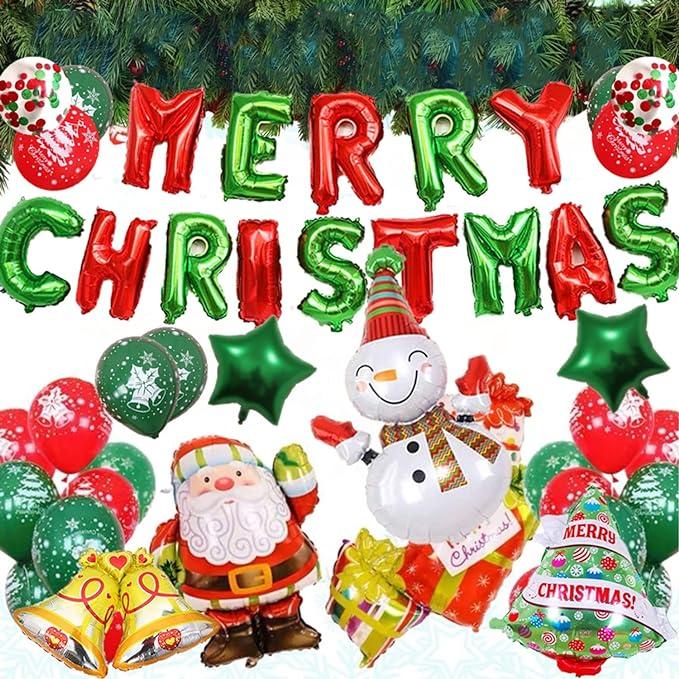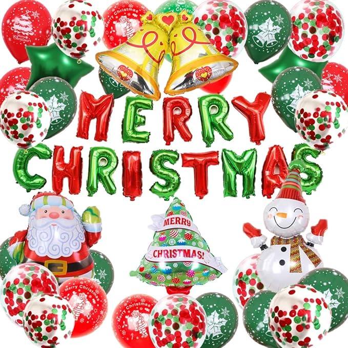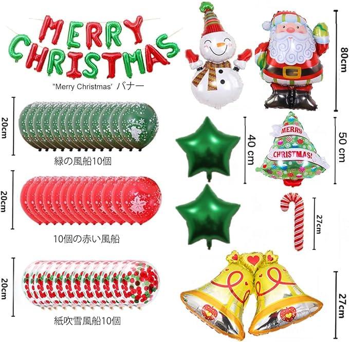 ■商品名クリスマス 風船 飾り付け MERRY CHRISTMAS バルーン バルーン クリスマス 風船 飾り付けパーティーふうせん ホイルバルーンセットサンタクロース雪だるまクリスマスツリー 緑・赤紙吹雪バルーン