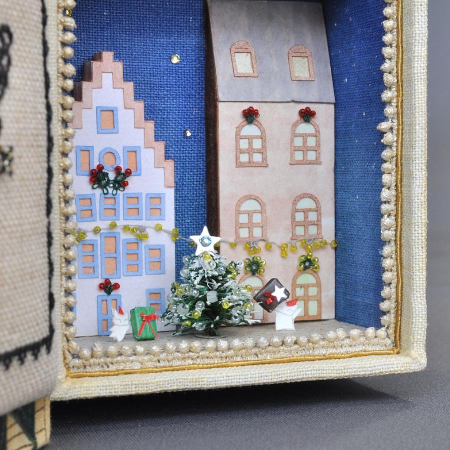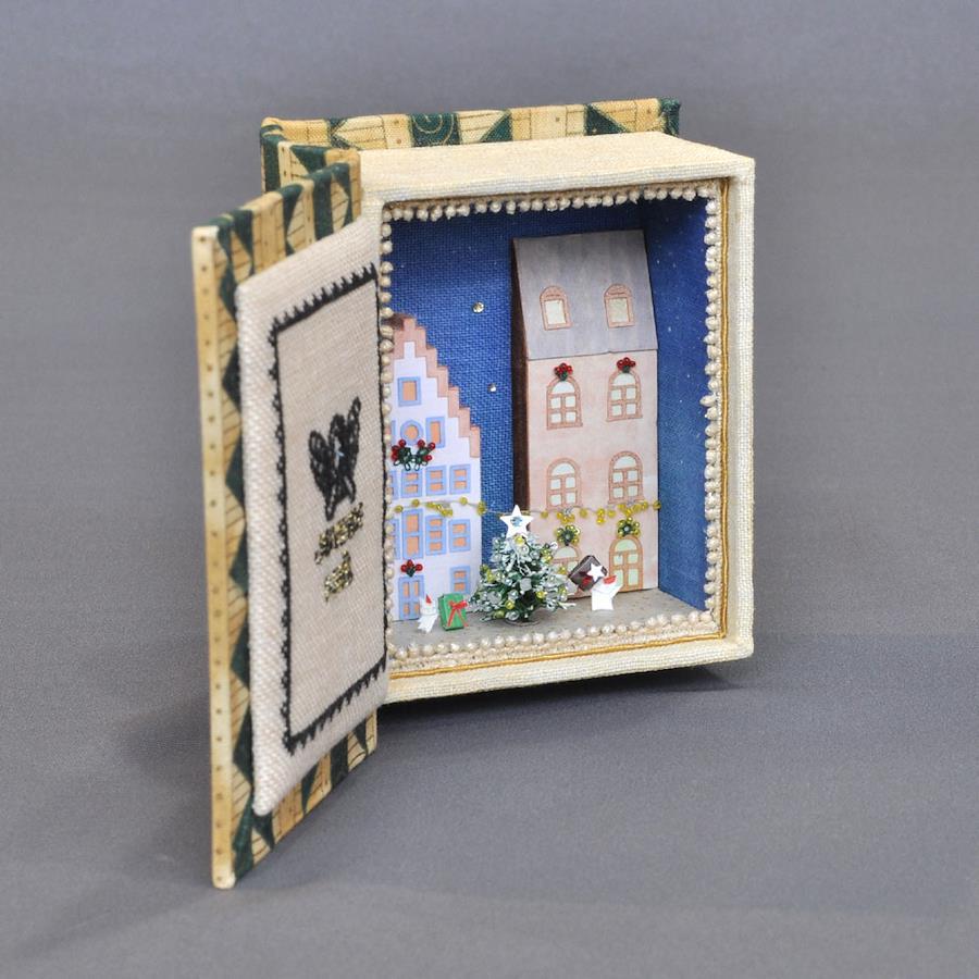 備考:机や棚に置いて、横から見る形です。覗き込むようにしてご鑑賞ください。本の表紙は開閉可能。パーツはすべて接着してあります。