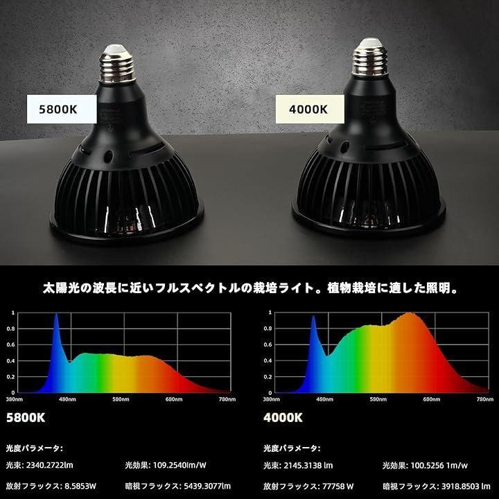 クリップオン植物成長ライト 24Wフルスペクトル育成電球 Ra98高演色評価数 ビーム角38° リフレクターカップを取り外すとビーム角を120°まで拡張可能白色系5800K