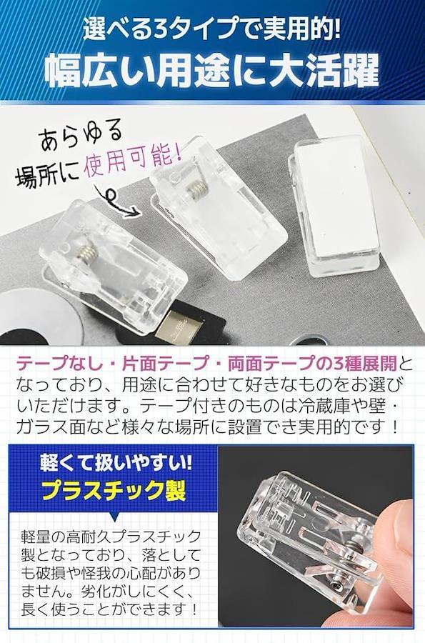 テープ付きのものは冷蔵庫や壁・ガラス面など様々な場所に設置でき実用的です。