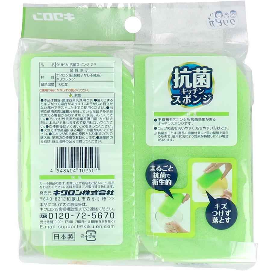 スポンジも!不織布も!まるごと抗菌です。●不織布もスポンジも抗菌効果があるキッチンスポンジです。●コップの底も洗いやすく、もちやすい形状です。※抗菌加工とは、商品に直接付着した菌の繁殖を抑えあるもので、使用状況により効果が持続しにくい場合があります。●研磨粒子なし。●日本製。●お買い得2個セット。